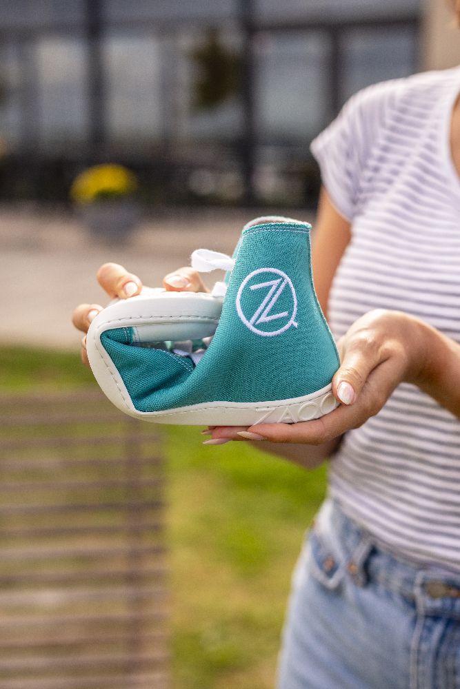 Tillverkad av turkos blå denim, du erbjuder inte bara en fräsch, slående design, utan också alla fördelar med en barfotsko. Med den vita tålocken och de vita skosnörena ser de sportiga ut och samtidigt moderna.