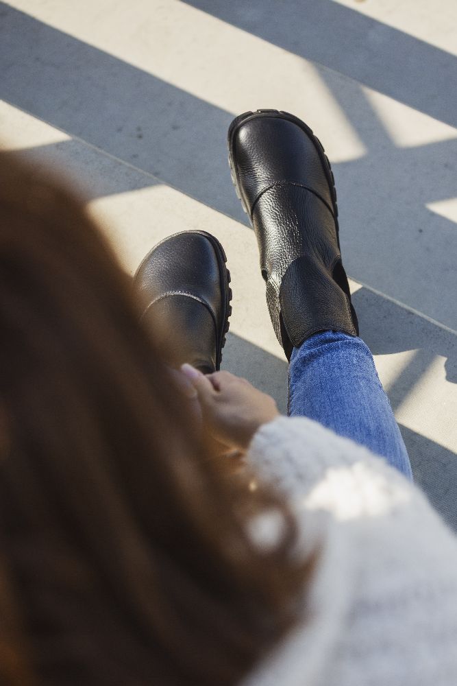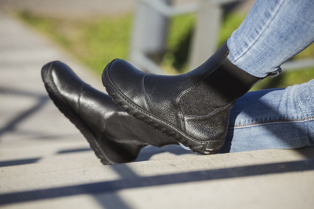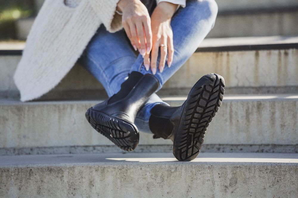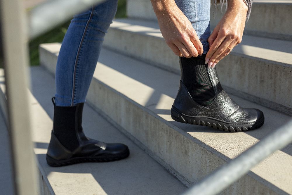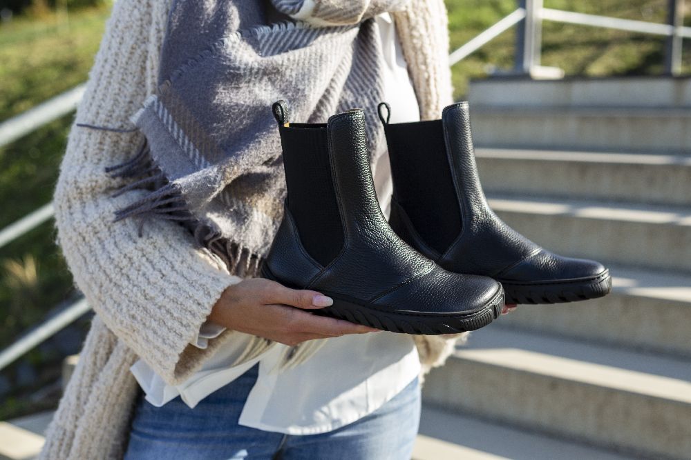 Dessa stövlar kombinerar komforten med barfota skor med den otänkbara stilen på de klassiska Chelsea -stövlarna. De har i elegant svart och tillverkad av högkvalitetsläder, de erbjuder inte bara en lyxig känsla av slitage, utan också hållbarhet.
