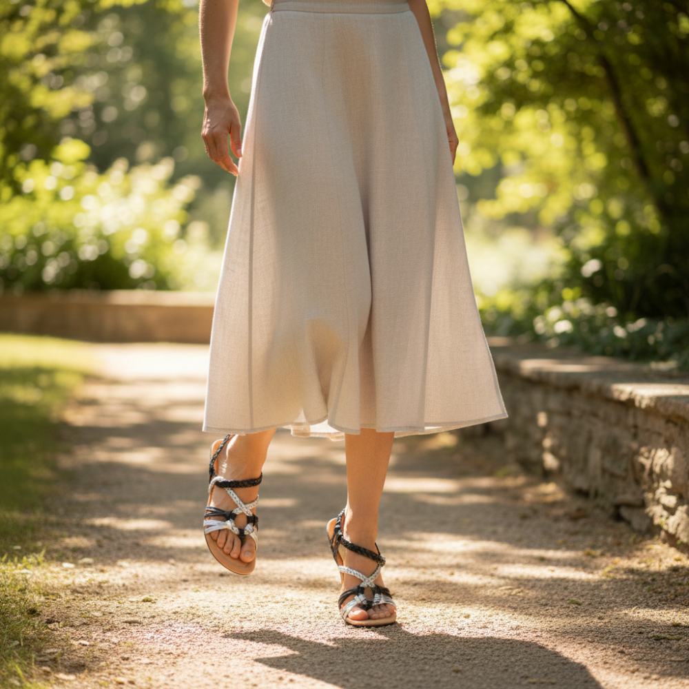 Remmarna i svart och silver körs i ovanlig form, ibland flätad, ibland knutna. Detta utgör den feminina utseendet på barfota sandaler. Och bäst av allt: Du behöver inte öppna något för att glida in, för vi har införlivat ett elastiskt band på baksidan av remmen. Det är lättare att ta på sig och ta av en sandal.