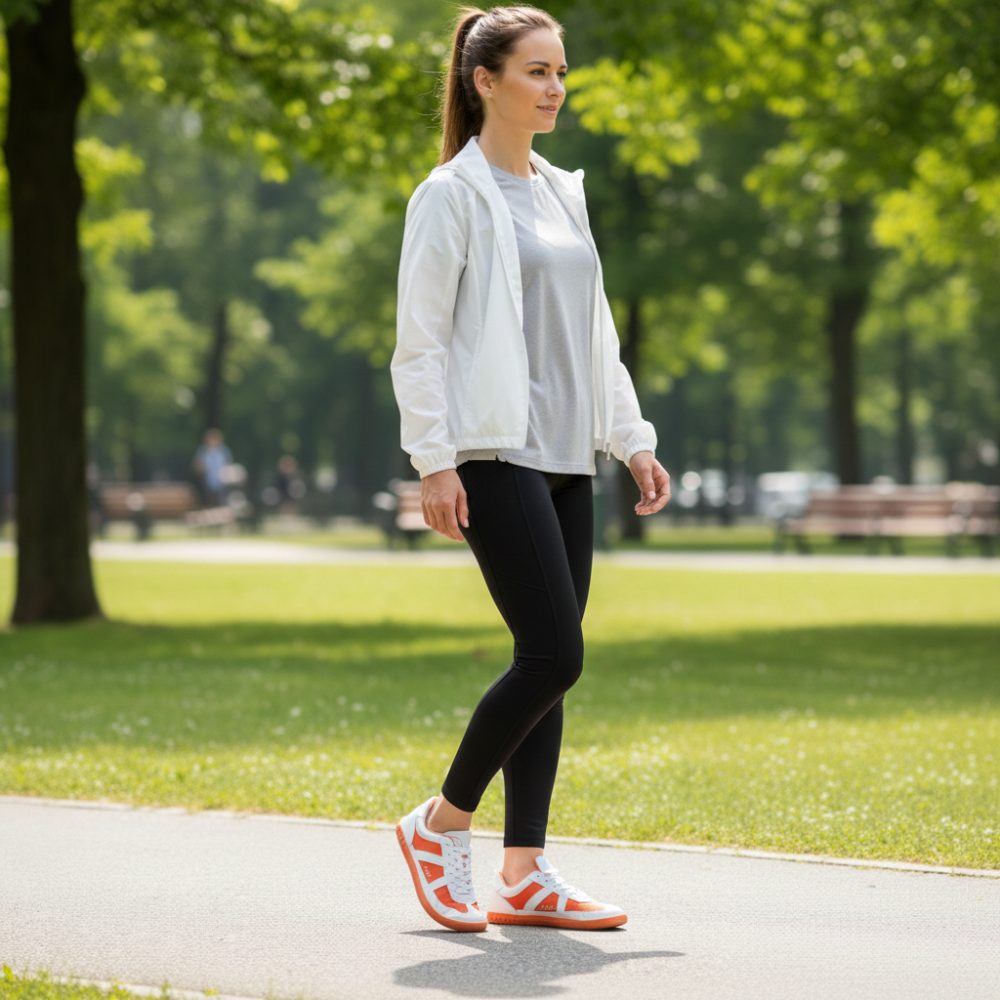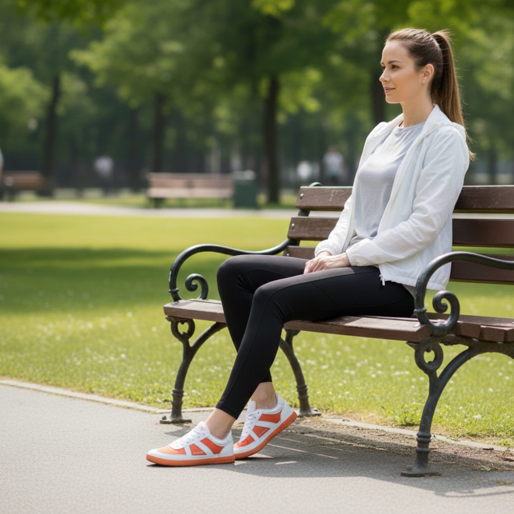 Med sin färgkombination av vitt och orange ger Barefoot Sneaker det extravaganta utseendet. Ingen gör det så snabbt. Ändå är Oaqley inte påträngande alls, designen är chic och som topp -upp.