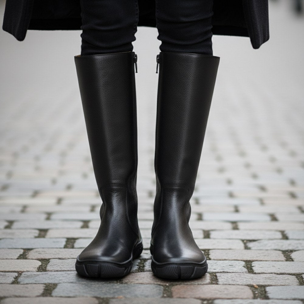 Dessa enkla stövlar är gjorda av svart premium nappa läder, som inte bara ser hög kvalitet ut utan också säkerställer en lång hållbarhet. Trots den höga axeln är Qazz Black lätt och ger dig känslan av frihet med varje steg.