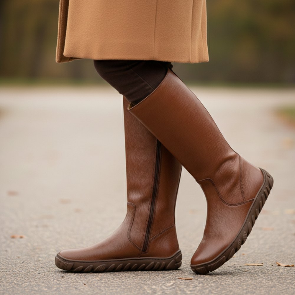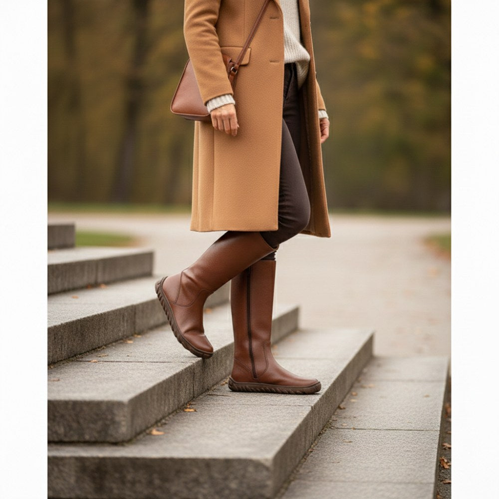 Qazz Brown är ditt nya måste eftersom dessa stövlar kombinerar elegans med komforten med barfota skor. Hennes enkla design i en varm brun ton gör henne till en mångsidig följeslagare som enkelt passar in i varje blick. Dessa höga stövlar är gjorda av förstklassig nappa -läder, inte bara för stil utan också för kvalitet som varar länge.