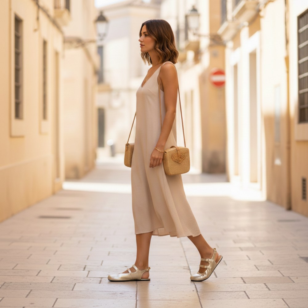 Den flexibla sulan och det mjuka glansläderet anpassas till dina rörelser. Var aktiv hela dagen utan att föregående stil - vårt Qomeet -guld gör det möjligt. Bär den till din favorit sommarklänning eller kombinera den med flödande byxor och en chic topp för en elegant kvällsutseende. Qomeet Gold ger också din outfit en touch av glamour till jeans och en enkel T-shirt. Det är den perfekta följeslagaren för bröllop, trädgårdsfester eller bara för en dag på kontoret om du vill ge ditt utseende en speciell accent.