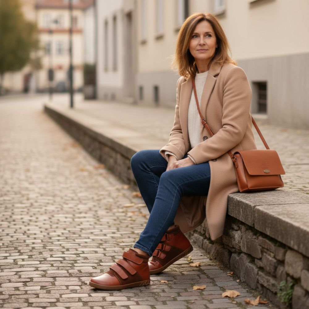Qooper är den halvhöga barfota skon, som ser särskilt ädla ut på grund av dess bruna läder och är helt enkelt otroligt bekväm med det praktiska kardborrfästet.